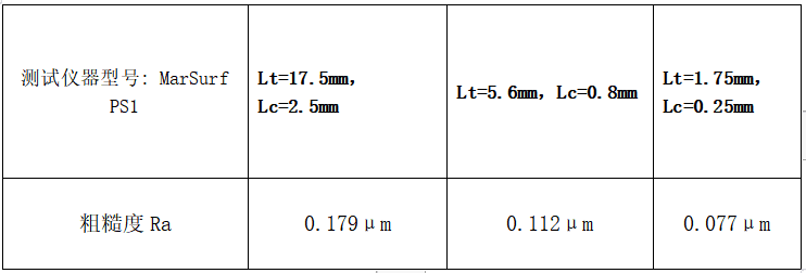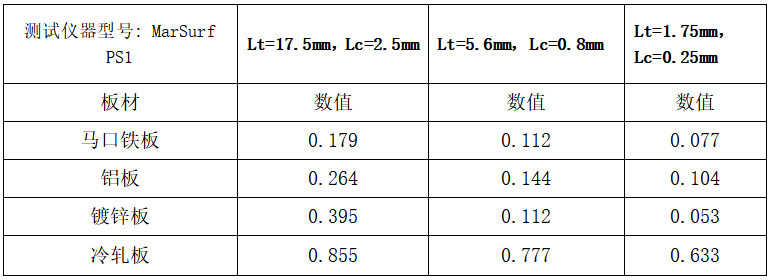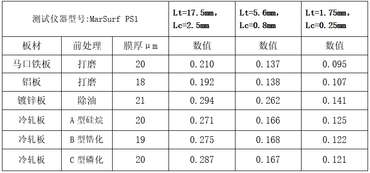 表1.不同Lc下马口铁板基材Ra值测试结果
